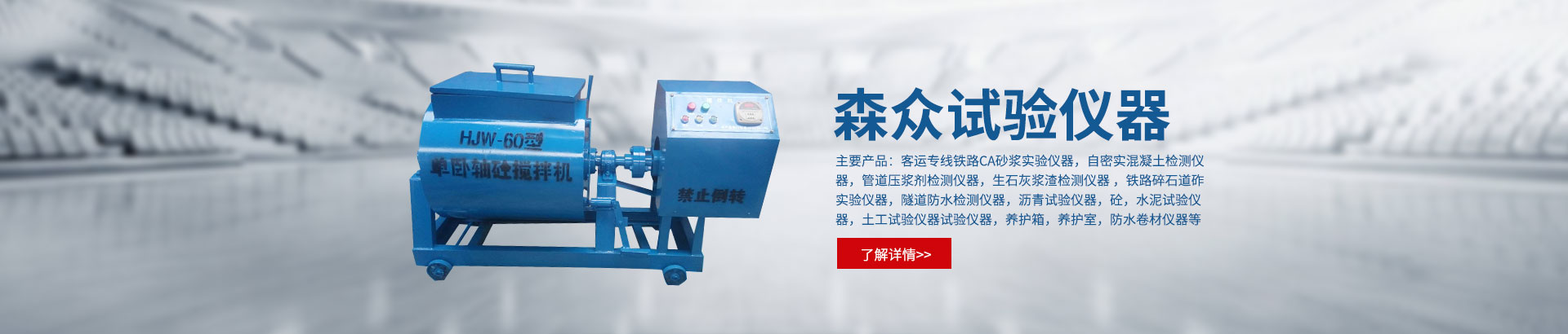 滄州森眾試驗儀器有限公司是目前國內(nèi)生產(chǎn)公路試驗儀器、建筑試驗儀器的重點骨干企業(yè)。在國內(nèi)具有較高的度,檢測手段完善,技術(shù)力量雄厚。產(chǎn)品嚴(yán)格按照,國家標(biāo)準(zhǔn)設(shè)計生產(chǎn),多次在國家重點工程中標(biāo)。除配套供應(yīng)試驗儀器設(shè)備外,我公司還承擔(dān)新建試驗室的規(guī)劃設(shè)計,設(shè)備選型,安裝調(diào)試,配件供應(yīng)與后勤保障等業(yè)務(wù)。主要產(chǎn)品:客運專線鐵路CA砂漿實驗儀器,自密實混凝土檢測儀器,管道壓漿劑檢測儀器,生石灰漿渣檢測儀器,鐵路碎石...
